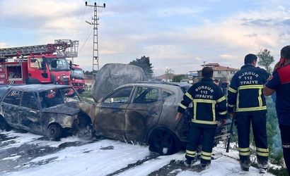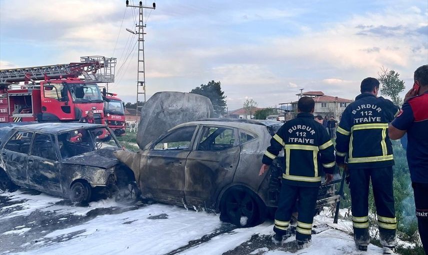 Çarpışmanın etkisiyle alev alan araçlar, itfaiye ekiplerinin hızlı müdahalesiyle söndürüldü.
