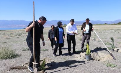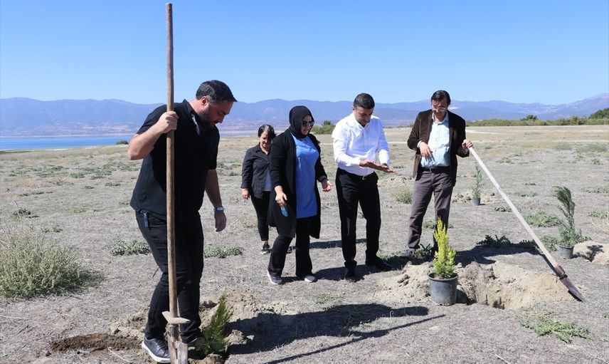 Burdur'da görev yapan gazeteciler, kuruma tehdidi altındaki Burdur Gölü çevresinde ağaç dikme etkinliği gerçekleştirdi.