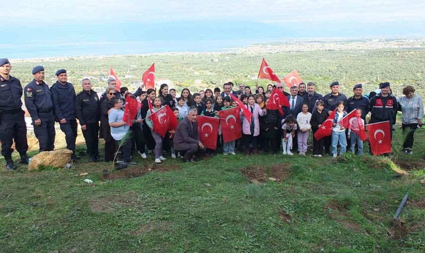 Öğrenciler anne ve babalarıyla birlikte fidan dikerken, törene katılan davetliler ve jandarma komutanları da çalışmalara destek verdi. Fidan diken çocuklara Türk Bayrağı dağıtıldı; törene katılan Kaymakam Cumali Atilla, öğrenci ve velilerle hatıra fotoğrafı çektirdi.