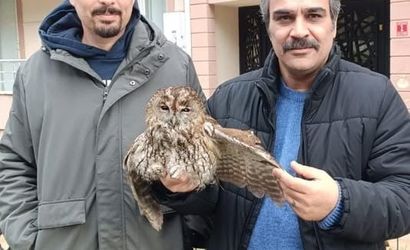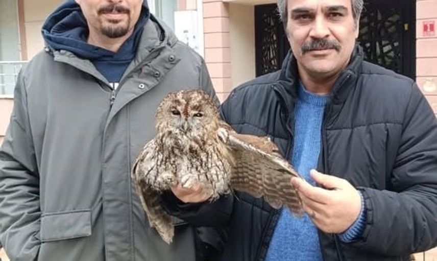 Balkona sığınan baykuş, yetkililere teslim edildi