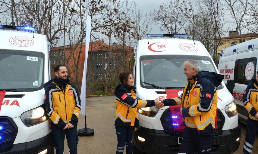 Ambulanslar Ankara’dan Bursa’ya getirildi ve İl Sağlık Müdürlüğü’nde düzenlenen törende hizmete girişleri gerçekleştirildi. Törene Uzm. Dr. Mustafa Çetin (Bursa İl Sağlık Müdürü), Doç. Dr. Hüseyin Aygün (Acil Sağlık Hizmetleri Başkanı), İl Sağlık Müdürlüğü yöneticileri, Bursa 112 Başhekimliği yöneticileri ve sağlık çalışanları katıldı.
