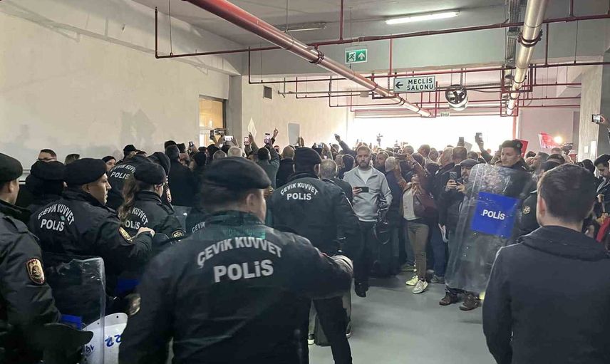 Belediye binası çevresinde polis yoğun güvenlik tedbiri aldı. Çevik kuvvet barikatlar kurdu, tomalar hazır bekletildi ve belediyenin arka otopark girişi bariyerlerle kapatıldı. Meclis üyeleri haricinde kimsenin içeriye alınmaması kararı uygulandı.
