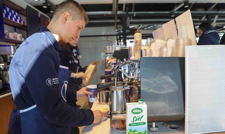 Projeye katılan stajyerler, farklı görevlerde uygulamalı deneyim kazanıyor. Merinos Parkı'ndaki BURFAŞ B Kafe'de stajyer barista olarak çalışan 16 yaşındaki Ümit Hazar, personelle birlikte siparişleri titizlikle hazırlıyor ve müşterilerden takdir topluyor.