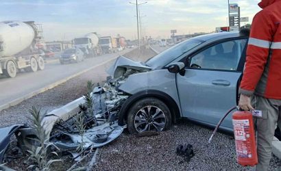 Bursa-Çanakkale yolunda aydınlatma direğine çarpan otomobil hurdaya döndü; sürücü yaralı