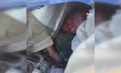 Bariyerlere saplanıp demir yığınına dönen kamyon kabininde can pazarı