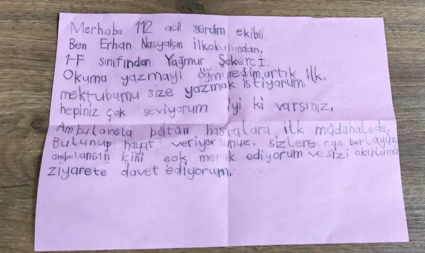 Erhan Nasyalçın İlkokulu 1. sınıf öğrencisi Yağmur Şekerci, ambulansı yakından görmek isteyince Bursa 112 Acil Sağlık Hizmetleri Başkanlığı'na bir mektup yazdı. Mektubunda okuluna bir ambulans gelmesini dilediği belirtilen Yağmur'un isteği, 112 ekipleri tarafından karşılandı.