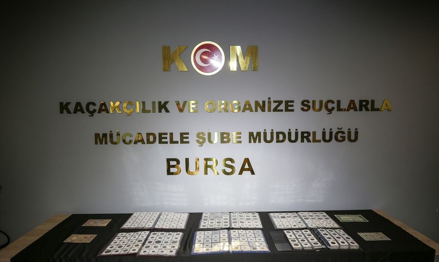 Bursa'da, polisin düzenlediği bir operasyonda, farklı dönemlere ait 1013 altın, gümüş ve kağıt para ele geçirildi. Bu paralar, tarihi eser niteliği taşıdığı belirtildi.