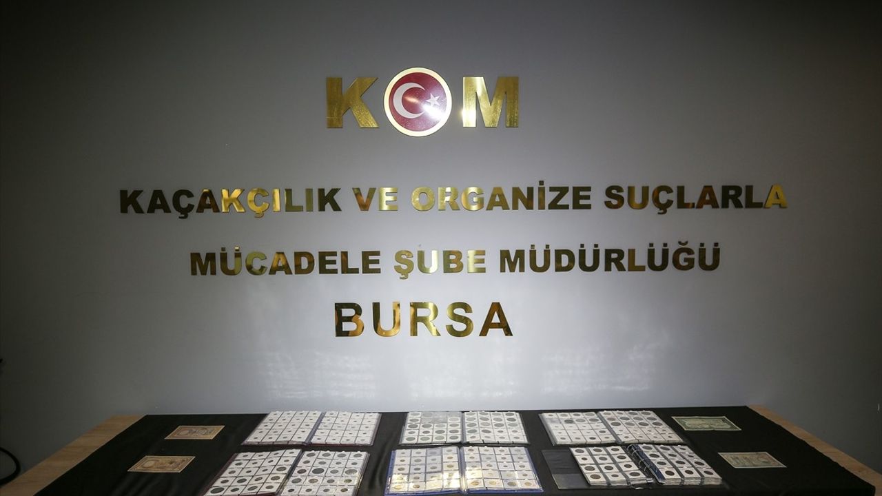 Bursa'da gerçekleştirilen operasyonda 1013 adet tarihi para bulunarak Bursa Kent Müzesi'ne teslim edilecek.