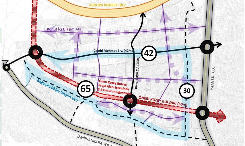 Planın en önemli bileşenlerinden biri olan Kuzey Bulvarı, 29 kilometre uzunluğunda ve 65 metre genişliğinde kesintisiz bir ulaşım koridoru olarak öngörülüyor. Bulvar, kentsel dönüşüm alanlarını kapsayan ekolojik tasarım bölgesinden geçirilerek hem kent içi trafiği düzenleyecek hem de yeşil sistemle entegre edilecek.