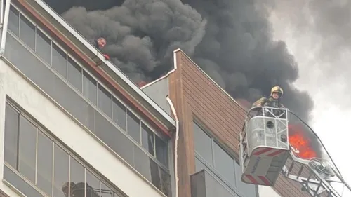 Bursa'da 8 katlı sitede çatı yangını: İki çalışan kurtarıldı, yangın bir saatte söndürüldü