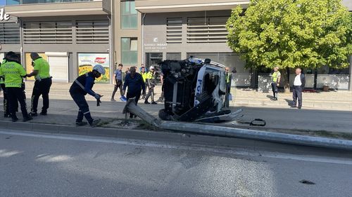 Bursa'nın Osmangazi ilçesinde polis aracının devrilmesi sonucu 2'si polis, toplam 5 kişi yaralandı.