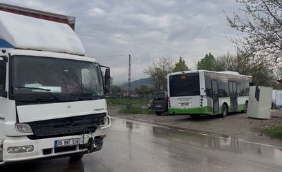 Bursa merkez Osmangazi ilçesi Demirtaş Mahallesi'nde meydana gelen kazada, bir belediye otobüsü ile nakliyat kamyonu çarpıştı. Olayda iki sürücü hafif şekilde yaralandı.
