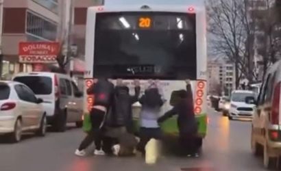Bursa'nın Yıldırım ilçesi Millet Mahallesi Cengizhan Caddesi üzerinde seyir halindeki bir belediye otobüsünün arkasına tutunan 4 çocuk, çevrede paniğe neden oldu. Çocuklar elleriyle otobüse tutunup ayaklarını yere sürterek, adeta dans eder gibiyse de yolculuk güvenlik açısından ciddi risk taşıdı.