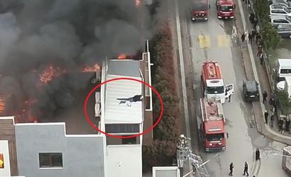Müdahale sırasında çatı katında metrelerce yüksekte mahsur kalan bir işçi, itfaiye ekiplerinin çalışmasıyla güvenli şekilde kurtarıldı. Kurtarma anına ait görüntüler kameraya yansıdı.