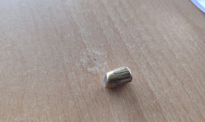 Çatıda bulunan sacın, isabet sonucu delindiği ve mermi çekirdeğinin sacı delerek beton zemine düştüğü bildirildi. Çarpmanın neden olduğu ses ve panik çevrede dikkat çekti.