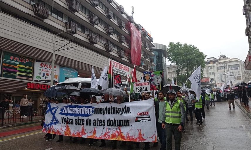 Bursa'nın Osmangazi ilçesinde Filistin'e destek için gerçekleştirilen yürüyüşte İsrail'in saldırıları protesto edildi.
