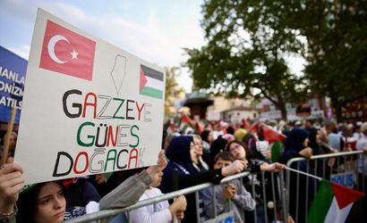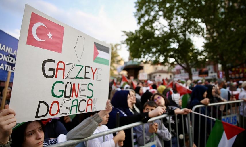 “Gazze Ölüyor Ayağa Kalk” sloganıyla gerçekleştirilen mitingde göstericiler, “Terörist İsrail”, “Gazze'de insanlık ölüyor”, “Filistin yanıyor” ve “Gazze'de soykırım var” yazılı pankartlar taşıdı. Göstericiler, Gazze'deki duruma dikkat çekmek için kefenli oyuncak bebeklerle de miting alanında bulundu.
