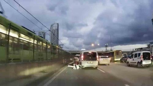 Geçit-Mudanya yolunda sinyal vermeden geçiş yapan hafif ticari araç ile motosiklet çarpıştı; sürücü aracını kontrol etmeye koştu, kasklı kadın motosikletli son anda ağır yaralanmaktan kurtuldu.