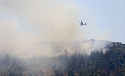 Bursa'nın Gürsu ile Kestel ilçeleri arasındaki ormanlık alanda çıkan yangına müdahale, havadan ve karadan devam ediyor.