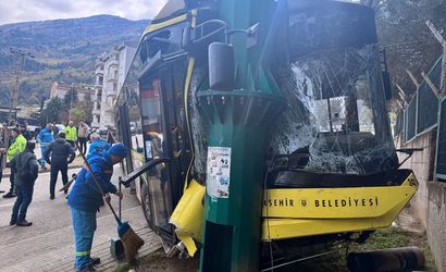Bursa'da, Büyükşehir Belediyesine ait bir halk otobüsünün aydınlatma direğine çarpması sonucu 8 kişi yaralandı. Kaza, Yıldırım ilçesi Siteler Mahallesi Kanuni Caddesi'nde meydana geldi.