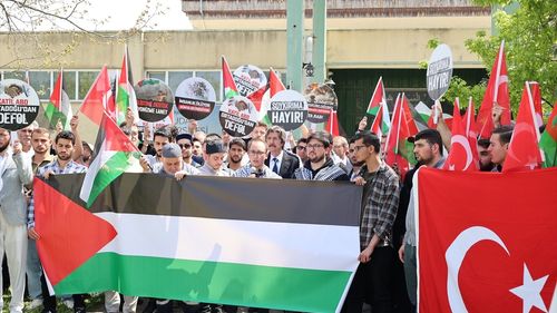 Bursa'da Filistinli Öğrenciler Topluluğu, Gazze'ye yönelik İsrail saldırılarını protesto etti.