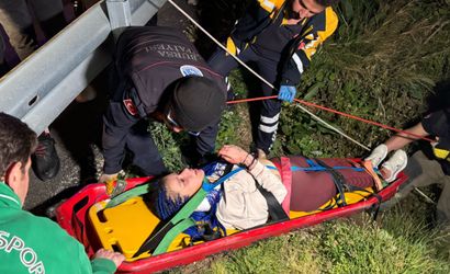 Bursa Osmangazi’de Uludağ’ın yamaçlarında yer alan Kireç Ocakları mevkisinde yürüyen kadın yol kenarına yapılan 5 metre yükseklikteki istinat duvarından ağaçlarla kaplı araziye düştü.