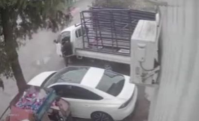 Olayın güvenlik kamerası görüntüleri ortaya çıktı. Olay sonrası kamyonet sürücüsü Ercan Çeziker gözaltına alınırken, polis ekiplerinin tahkikatı sürüyor.