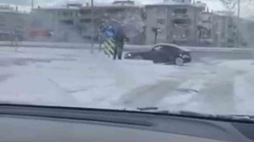 Bursa'da kar yağışında kavşakta drift: Sürücünün tehlikeli hareketi cep telefonu kamerasındaKaygan zeminde tehlikeli manevra, çevredeki sürücüler ve yayalar için risk oluşturduBursa'da etkili olan kar yağışı sonrasında yolların kayganlaşmasıyla bir sürücünün kavşakta kontrolsüz bir manevra yaptığı anlar çevrede bulunan bir kişi…