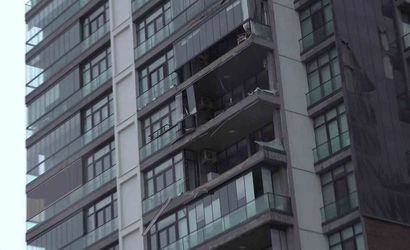 Bursa'da kuvvetli lodos, lüks sitenin cam balkon sistemlerini yerinden söktü