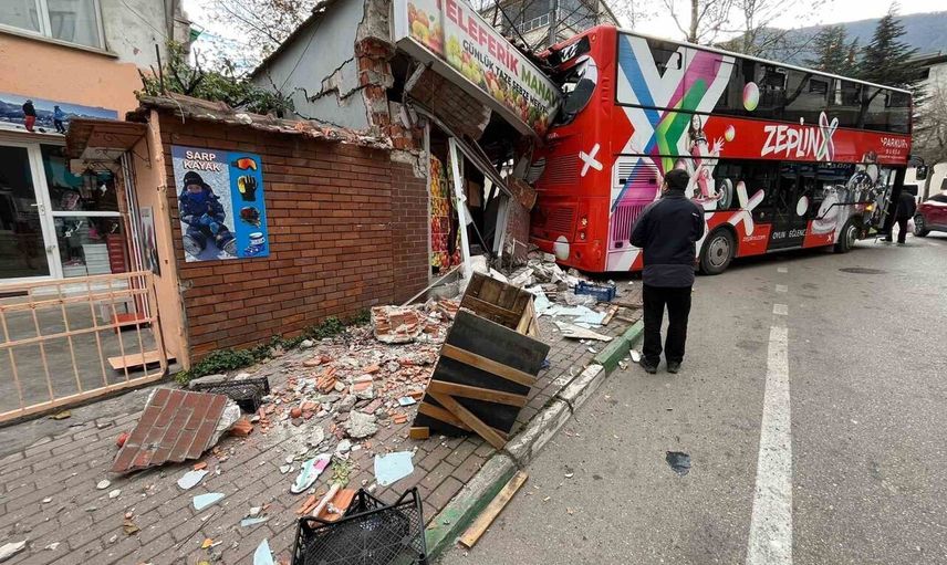 Bursa'nın Yıldırım ilçesi Teleferik Mahallesi'ndeki Nuri Erbak Anadolu Lisesi önüne öğrencileri almak için yanaşan 16 ZP 119 plakalı tur otobüsünün imdat freni boşaldı. Otobüsün içinde öğrenci bulunmadığı sırada araç hareket etti ve önce park halindeki bir otomobile, ardından bir manava çarparak durabildi.