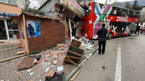 Bursa'da okul önünde imdat freni boşalan tur otobüsü manava çarptı, yaralanan yok
