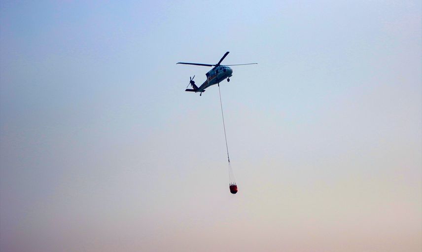 Sabahın ilk ışıklarıyla birlikte, karadan yürütülen çalışmalara uçak ve helikopterler de katıldı. Ekiplerin yürüttüğü çalışmalarla yangının ilerleyişinin durdurulması hedefleniyor. Ayrıca, bölge halkı, traktörlerinin arkasına bağladıkları su dolu tankerlerle ekiplere destek veriyor.