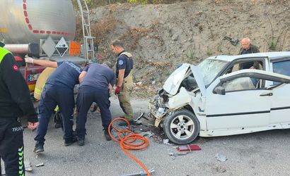 Edinilen bilgiye göre, E.Y. idaresindeki 10 BDC 83 plakalı otomobil, henüz bilinmeyen bir nedenle kontrolden çıkarak yol kenarında park halinde bulunan M.G. (52) idaresindeki 35 CKF 086 plakalı tankere arkadan çarptı.