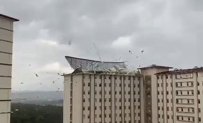 BURSA'DA ŞİDDELİ FIRTINA SEBEBİYLE ULUDAĞ ÜNİVERSİTESİ'NDEKİ YURDUN ÇATISI UÇTU.