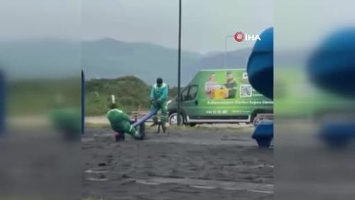 Bursa Osmangazi'de belediye temizlik personeli, iş molasında parkta tahterevallide oynayıp kaydedilen anlarla sosyal medyada ilgi gördü.