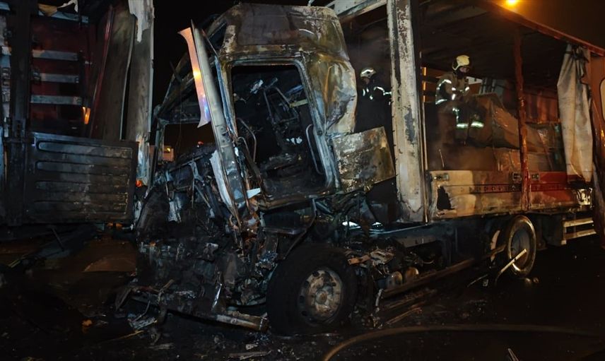 Kazada, Süleyman Balantekin (48) idaresindeki 16 BFN 889 plakalı tır, seyir halindeki Özbekistan uyruklu Kılıçhov Shoajalil tarafından yönetilen diğer bir tıra çarptı. Çarpışmanın şiddetiyle her iki tırda da yangın çıktı.