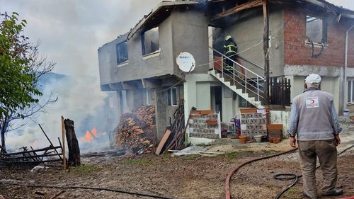 Orhaneli'nde çıkan yangında 2 ev ve 1 samanlık zarar gördü. Yangın ihbarı üzerine ekipler hemen müdahale etti.
