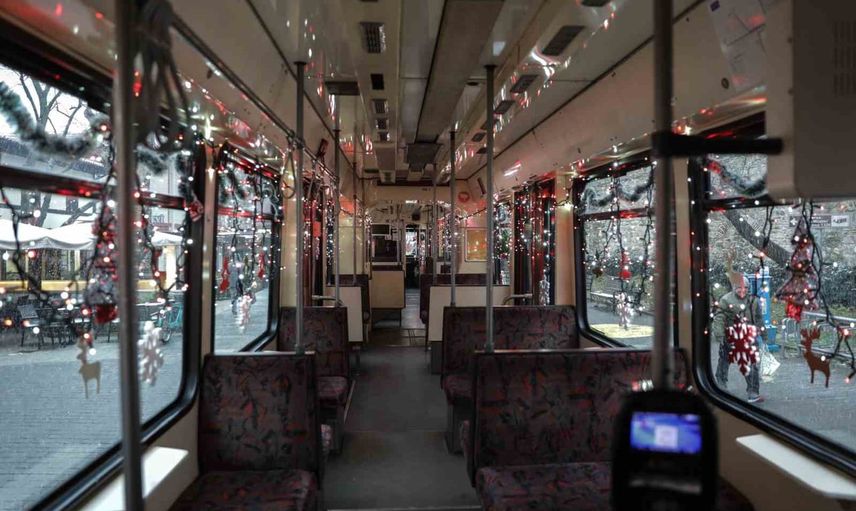 Vatandaşlar ışıklar ve süslemelerle donatılan tramvayı yoğun ilgiyle karşıladı