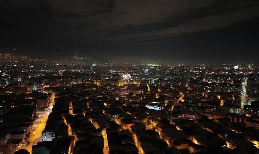 Takvimler 1 Ocak'ı gösterdiğinde Bursa'da birçok noktada havai fişekli kutlamalar yapıldı. Renkli anların yansımaları, kent genelinde gökyüzünü aydınlatan gösteriler şeklinde görüldü ve bazı anlar dron ile görüntülendi.