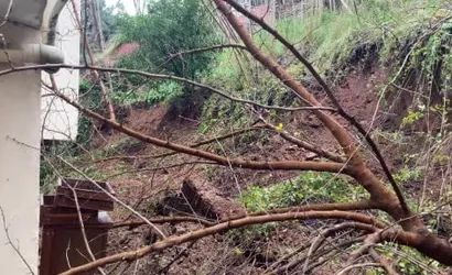 Bursa'da istinat duvarı çöktü, ağaçlar binaya devrildi