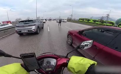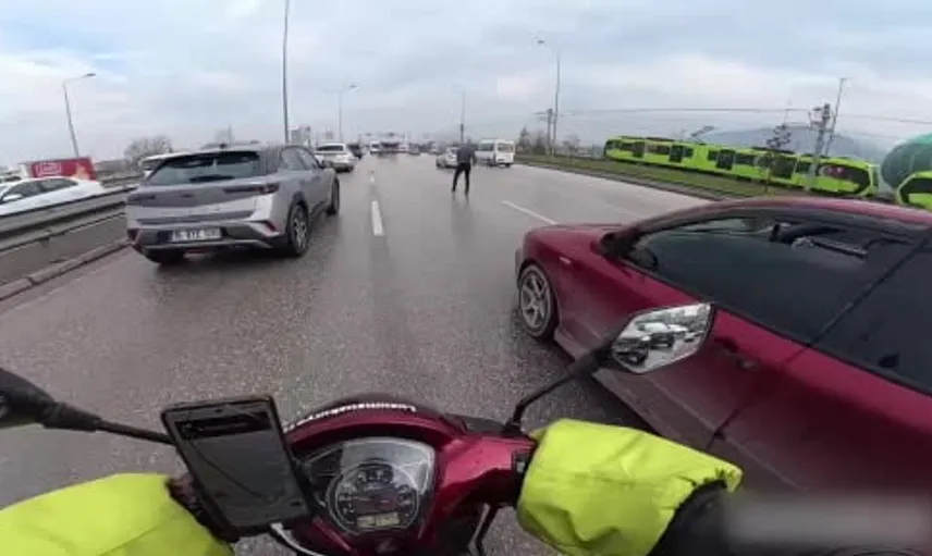 Bursa-İzmir Yolu üzerinde iki sürücü arasında meydana gelen 'yol verme' tartışması, araçlardan inilerek süren sözlü münakaşanın ardından fiziksel kavgaya dönüştü. Olay anına ilişkin görüntülerde tarafların birbirine uçan tekmelerle saldırdığı görülüyor.