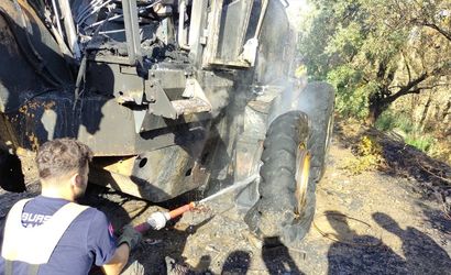 Orman Bölge Müdürlüğü'ne ait ve H.G. tarafından kullanılan iş makinesinin motor kısmında yangın çıktı. Dumanı fark eden operatör, aracı terk ederken alevler zeytinliğe yayıldı.