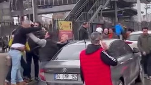 Bursa Osmangazi'de Gençosman Kavşağı yakınında maddi hasarlı zincirleme kazada sürücüler kavga etti; anlar bir vatandaşın cep telefonu kamerasına yansıdı.