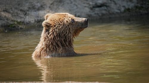 Karacabey’deki ayı barınağında, sıcak yaz günlerinde bozayılar özel gıdalarla besleniyor.