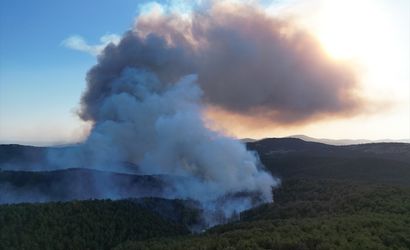 Bursa'nın Orhaneli ilçesinde çıkan orman yangınına havadan ve karadan müdahale sürüyor.