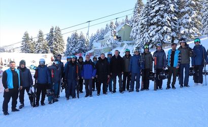 Bursa'da eğitim gören üniversite öğrencileri Gençlik ve Spor İl Müdürlüğü bünyesindeki Uludağ Gençlik Kampı'nda kayak öğreniyor.