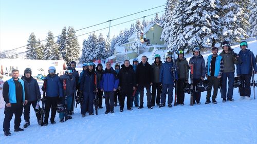 Bursa'daki üniversite öğrencileri, Uludağ Gençlik Kampı'nda kayak eğitimi alarak kış sporlarını öğreniyor.
