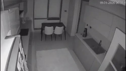 Bursa'nın Nilüfer ilçesi Görükle Balkan Mahallesi'nde saat 06.30'da inşaatı yeni tamamlanan binada mutfak asma tavanı çöktü, olay güvenlik kamerasına yansıdı.