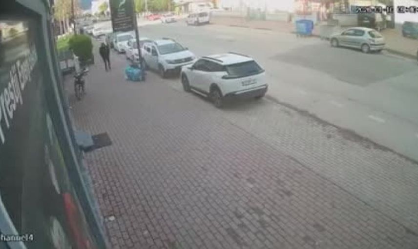 Aynı sırada lodos nedeniyle bir çöp kutusunun sürüklendiği de görüldü. Yaşanan tehlikeli anlar, çevredeki bir iş yerinin güvenlik kamerası görüntülerine yansıdı.