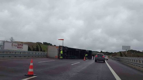 Bursa-İstanbul otobanı Orhangazi–Gebze viyadüğünde tır devrildi, sürücü hafif yaralandı
